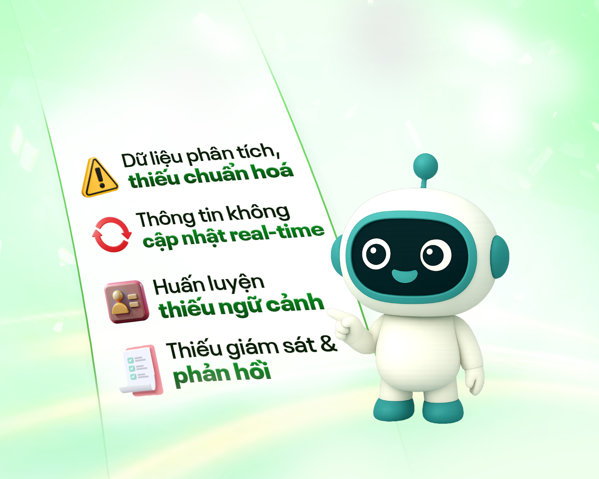 Thông tin bị tách biệt, không cập nhật theo thời gian thực - AI Chatbot vận hành như một “kho dữ liệu riêng”, không gắn với hệ thống quản trị chung của doanh nghiệp. Kết quả là câu trả lời dễ lỗi thời, sai lệch.