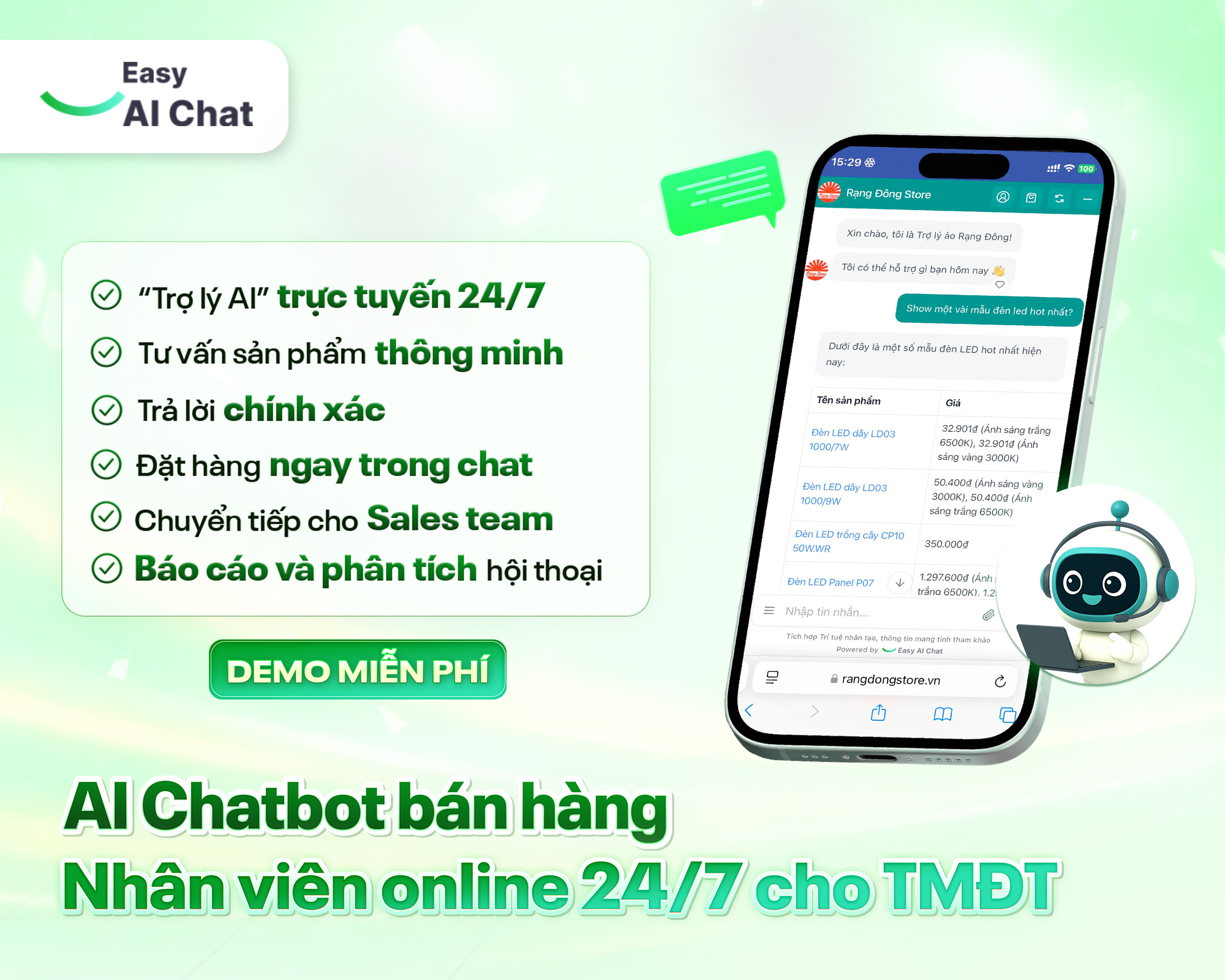 3. Giải pháp AI Chatbot bán hàng từ Easy AI Chat