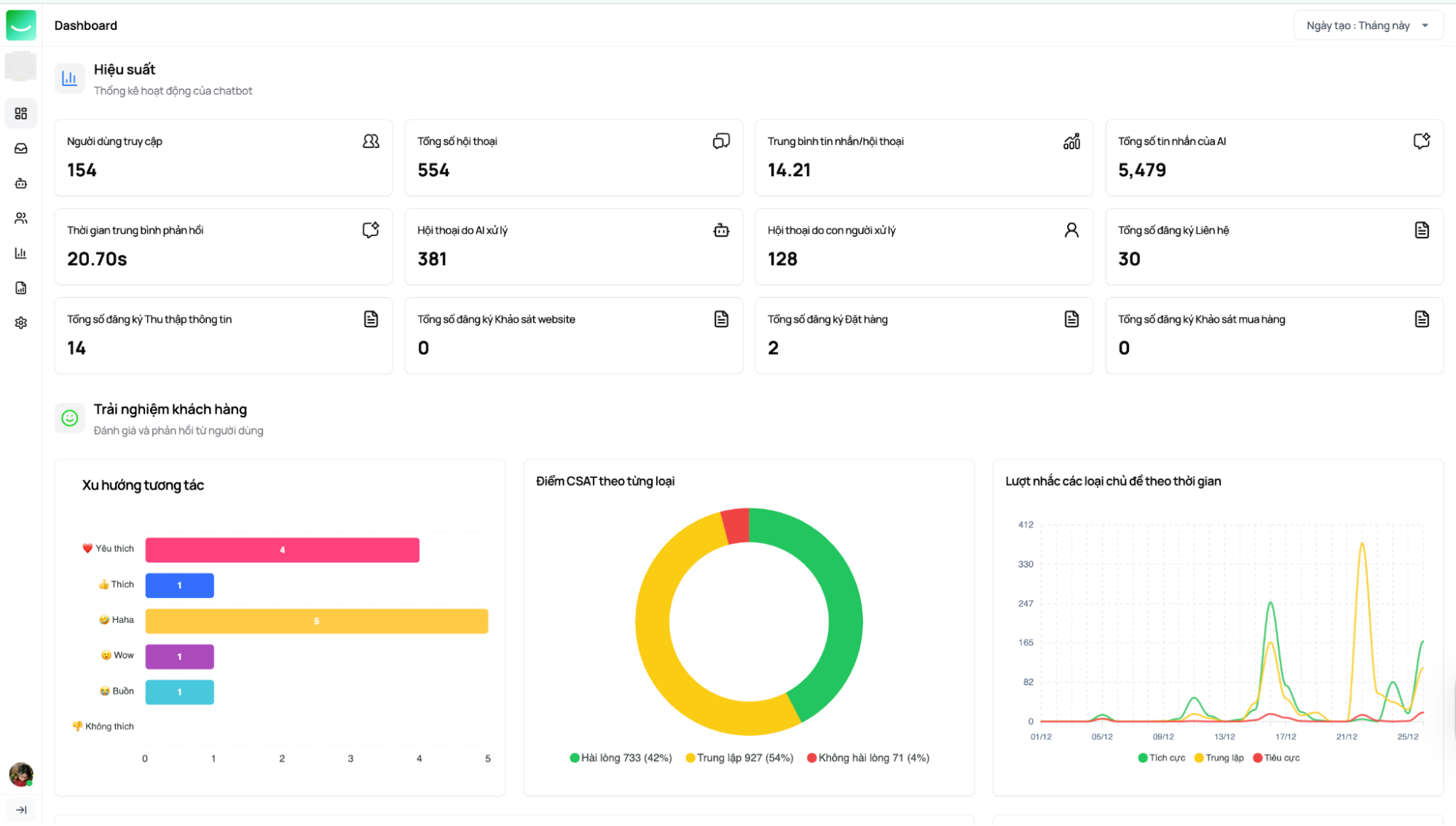 Dashboard giúp bạn nhanh chóng đánh giá AI đang hỗ trợ tốt ở đâu và điểm nào cần điều chỉnh.